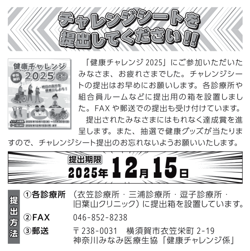 チャレンジシートを提出してください!!